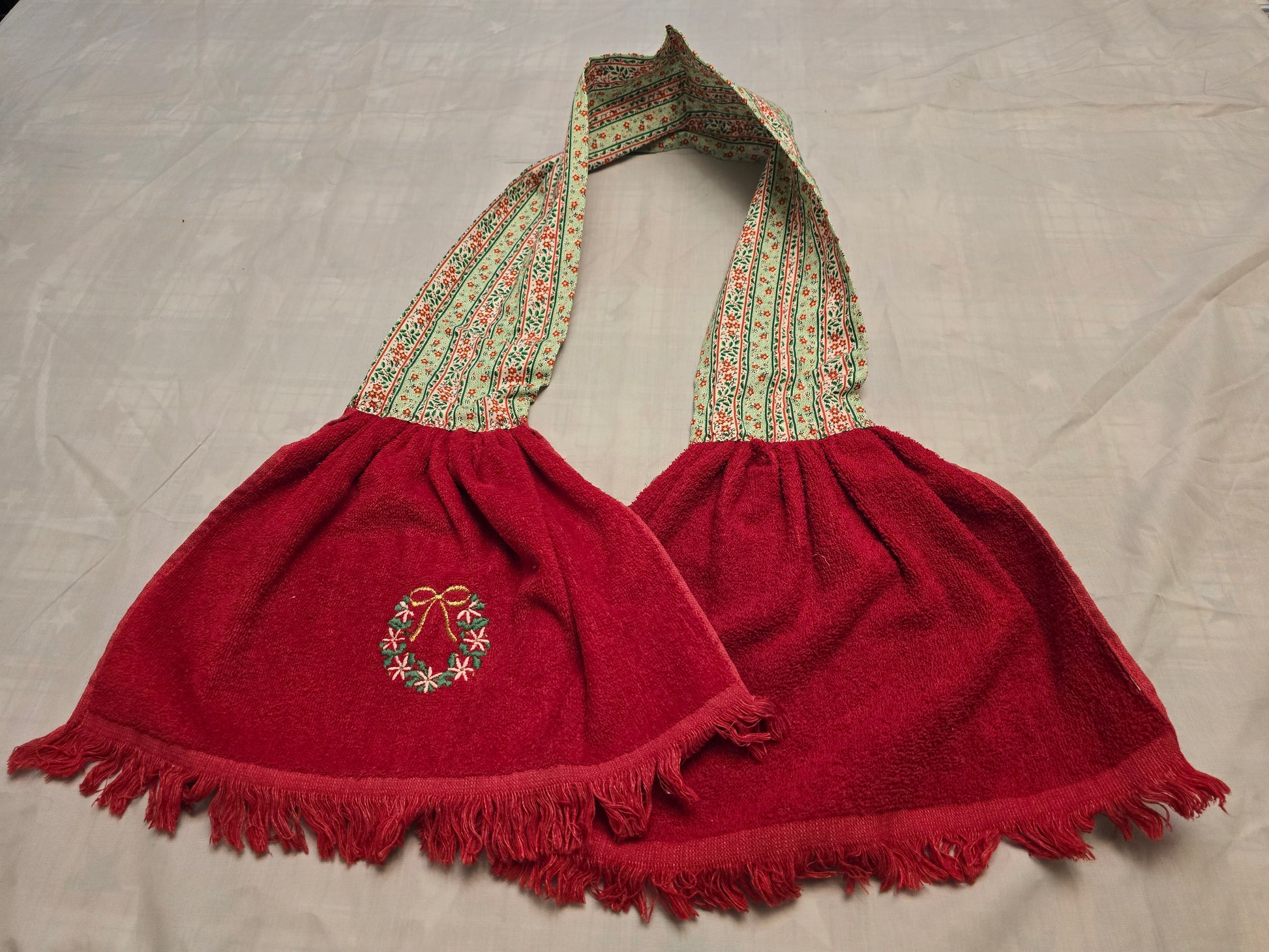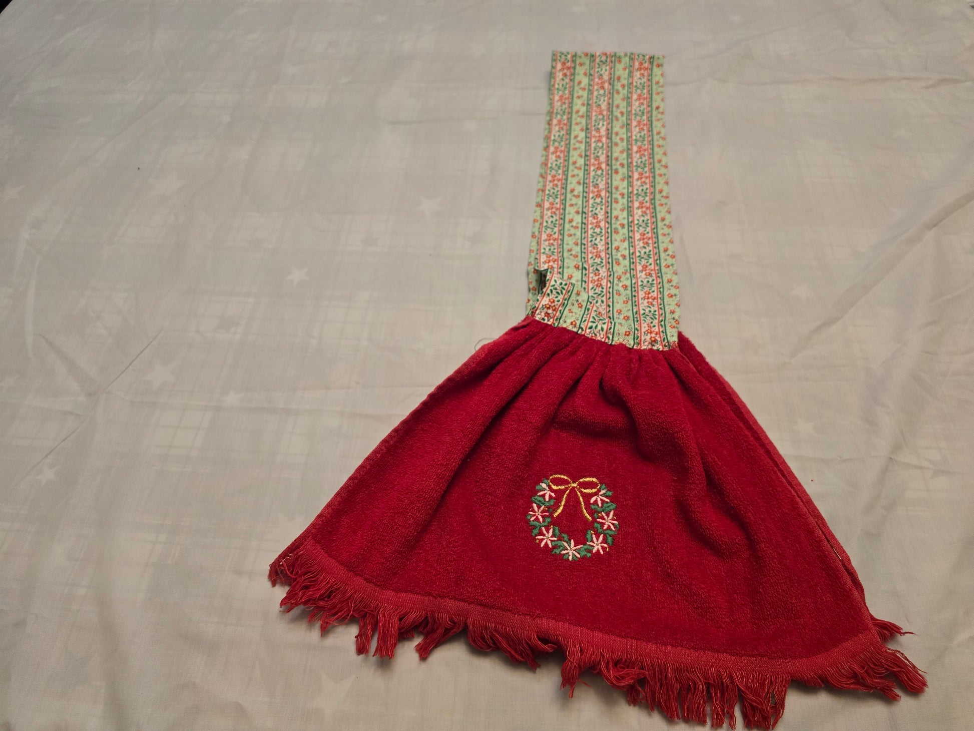 Kitchen Towel Scarf-Christmas wreath on red with floral