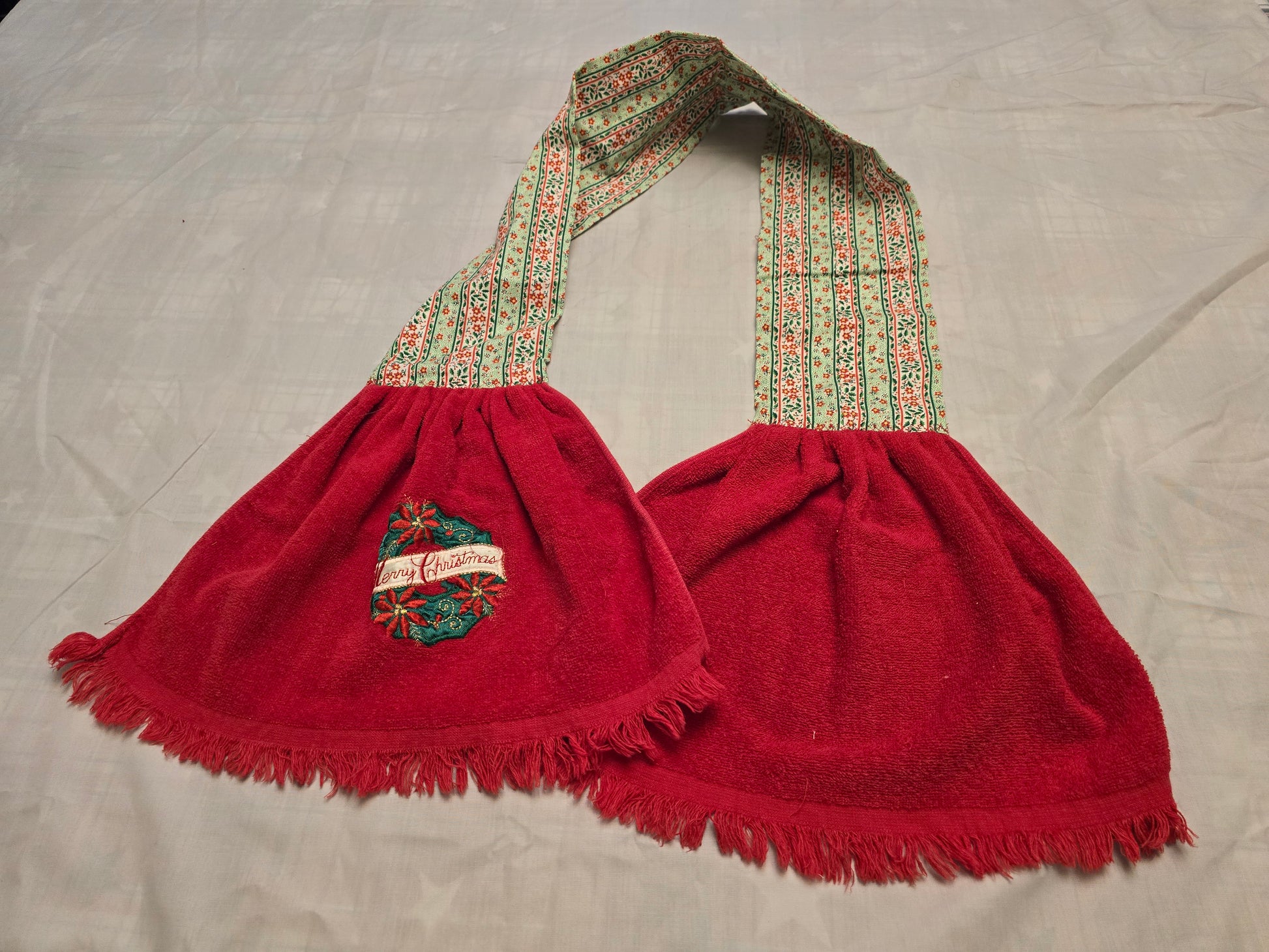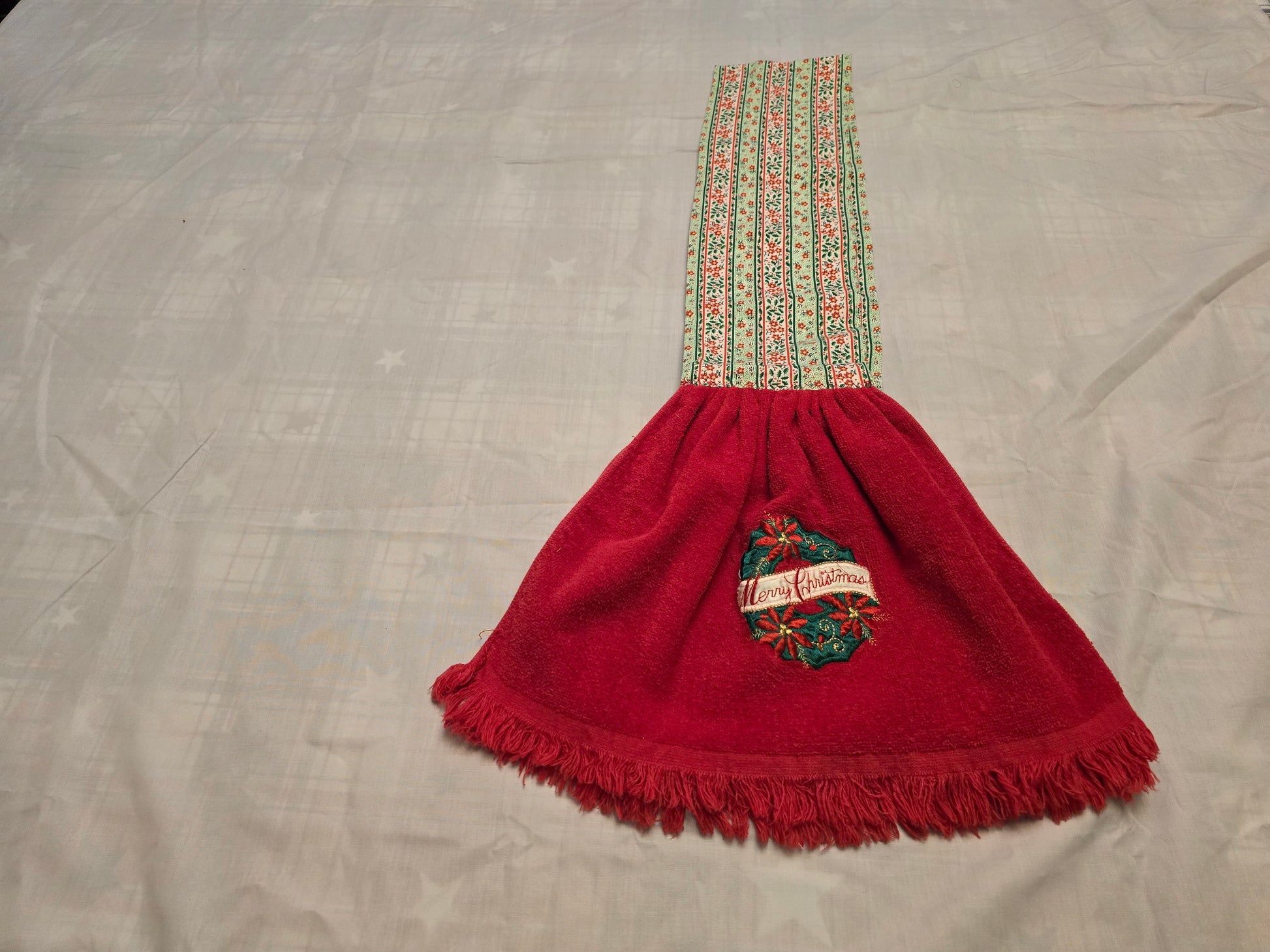 Kitchen Towel Scarf-Christmas Merry Christmas wreath green floral